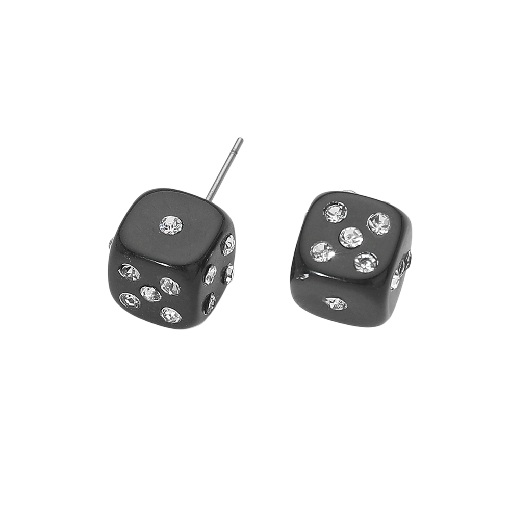 Details • Size : 0.3" X 0.3" X 0.3" • Post Back • Playful stud earrings designed in a classic dice shape with sculpted dot detailing for a bold yet compact look. These novelty studs add character and charm to everyday outfits, themed collections, and statement accessory assortments while remaining easy to wear and style. • Hypoallergenic • Lead and Nickel Compliant
