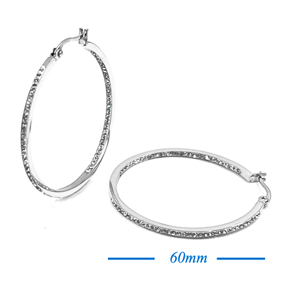 Stainless Steel 2.5 Inch Inside Out Rhinestone Hoop Pin Catch Earrings