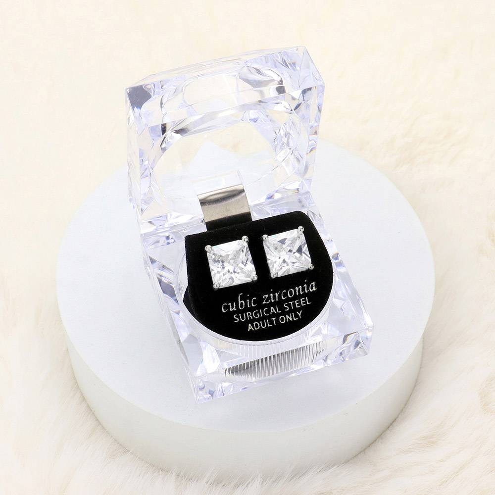 10mm Square Crystal Cubic Zirconia CZ Stud Earrings with Clear Box