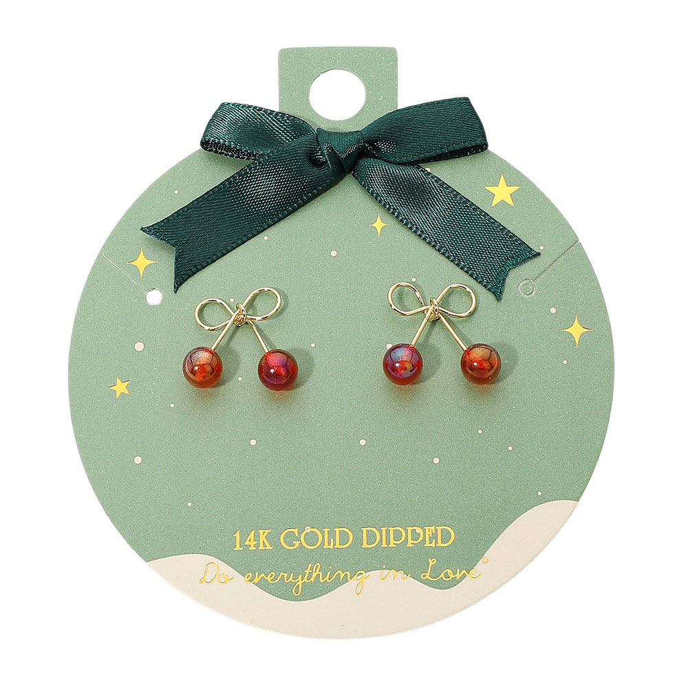 Details • Size : 0.8" X 0.7" • Post Back • Delicate bow-knot ball tip stud earrings presented on a festive card, perfect for gifting or adding a playful touch to everyday looks. The petite shape and charming drop design make them an easy accessory for seasonal outfits, casual wear, or special occasions with a sweet, polished finish. • Lead and Nickel Compliant • Hypoallergenic • Made In Korea • Gold Dipped