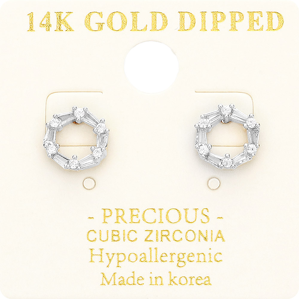 14K Gold Dipped CZ Embellished Open Circle Stud Earrings