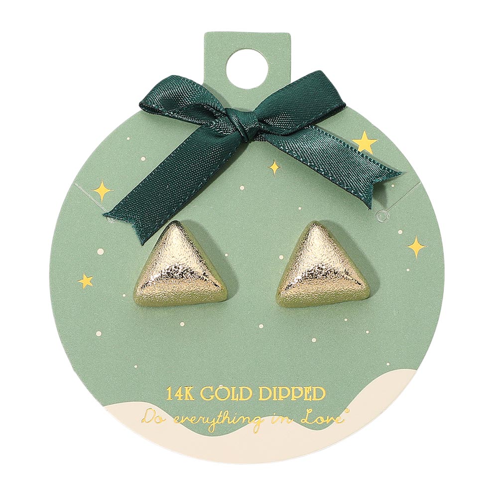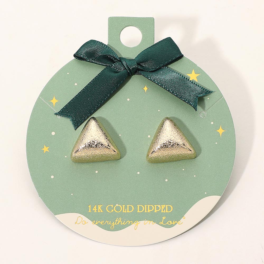Details • Size : 0.8" X 0.8" • Post Back • Minimalist matte triangle stud earrings featuring a smooth, sculpted shape with a modern geometric look. Their simple yet bold design makes them perfect for everyday wear, gifting, or adding a clean contemporary accent to seasonal outfits. A versatile accessory with effortless style. • Gold Dipped • Hypoallergenic • Lead and Nickel Compliant • Made In Korea