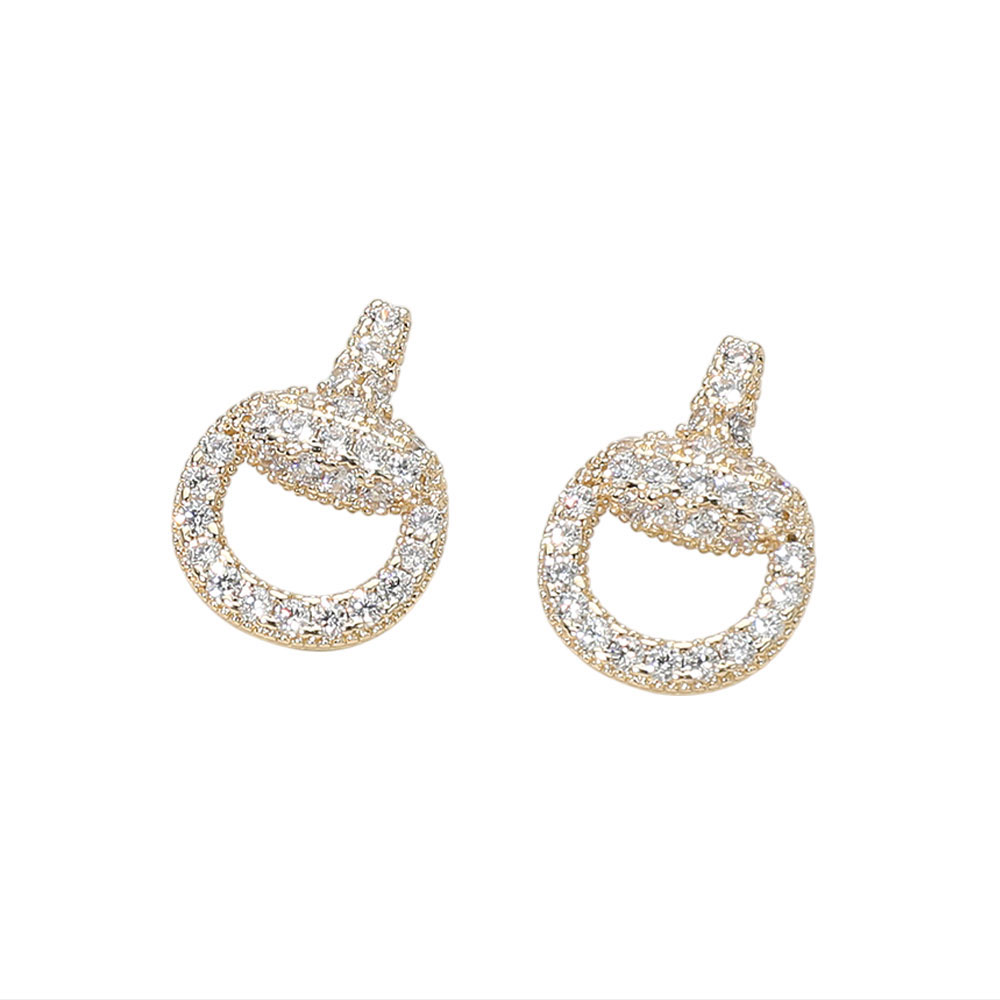 Details • Size : 0.7" X 0.8" • Post Back • These sparkling circle stud earrings offer a refined, modern look with their intricate detailing and luminous finish. Designed to elevate any outfit, they deliver a touch of sophistication and shine, making them a versatile accessory for both daily wear and special occasions. • CZ Cubic Zirconia • Gold Dipped