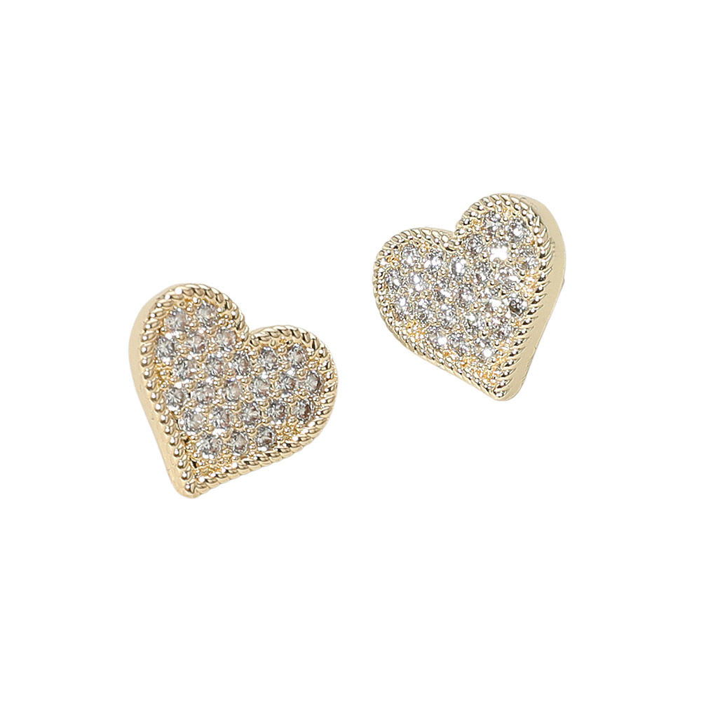 14K Gold Plated CZ Stone Paved Heart Stud Earrings
