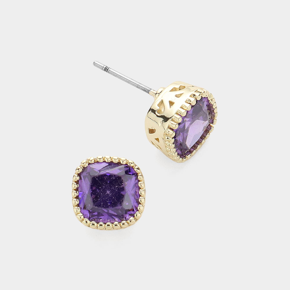 14K Gold Plated Square CZ Stone Stud Earrings