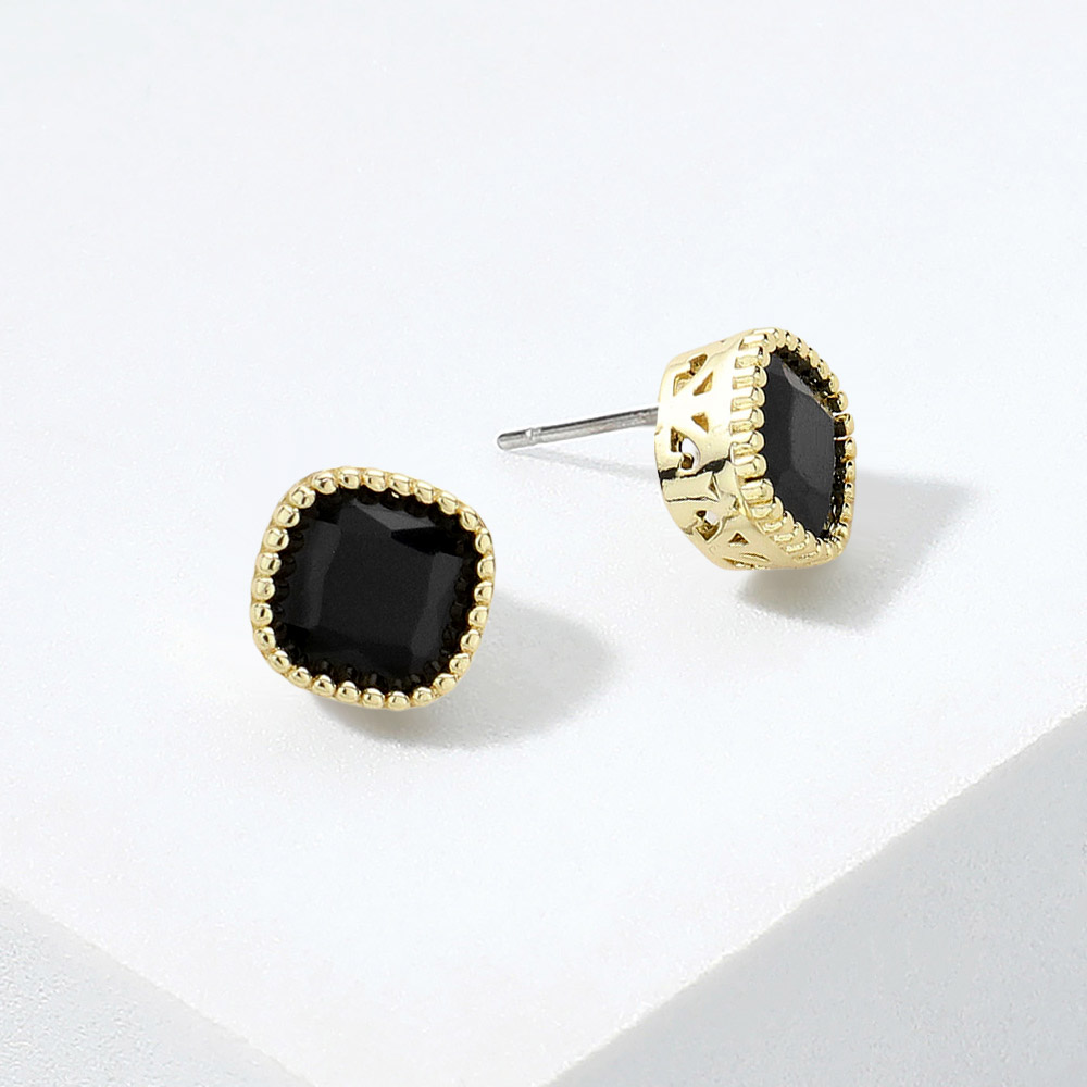 14K Gold Plated Square CZ Stone Stud Earrings