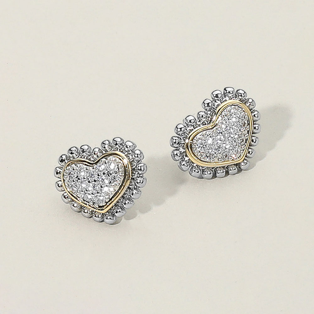 Details • Size : 0.6" X 0.4" • Post Back • These sparkling heart stud earrings bring refined charm to any look with their intricate design and luminous finish. Styled to catch the light beautifully, they offer a timeless touch that complements both casual and dressy outfits, making them a versatile accessory choice. • CZ Cubic Zirconia • Gold Dipped