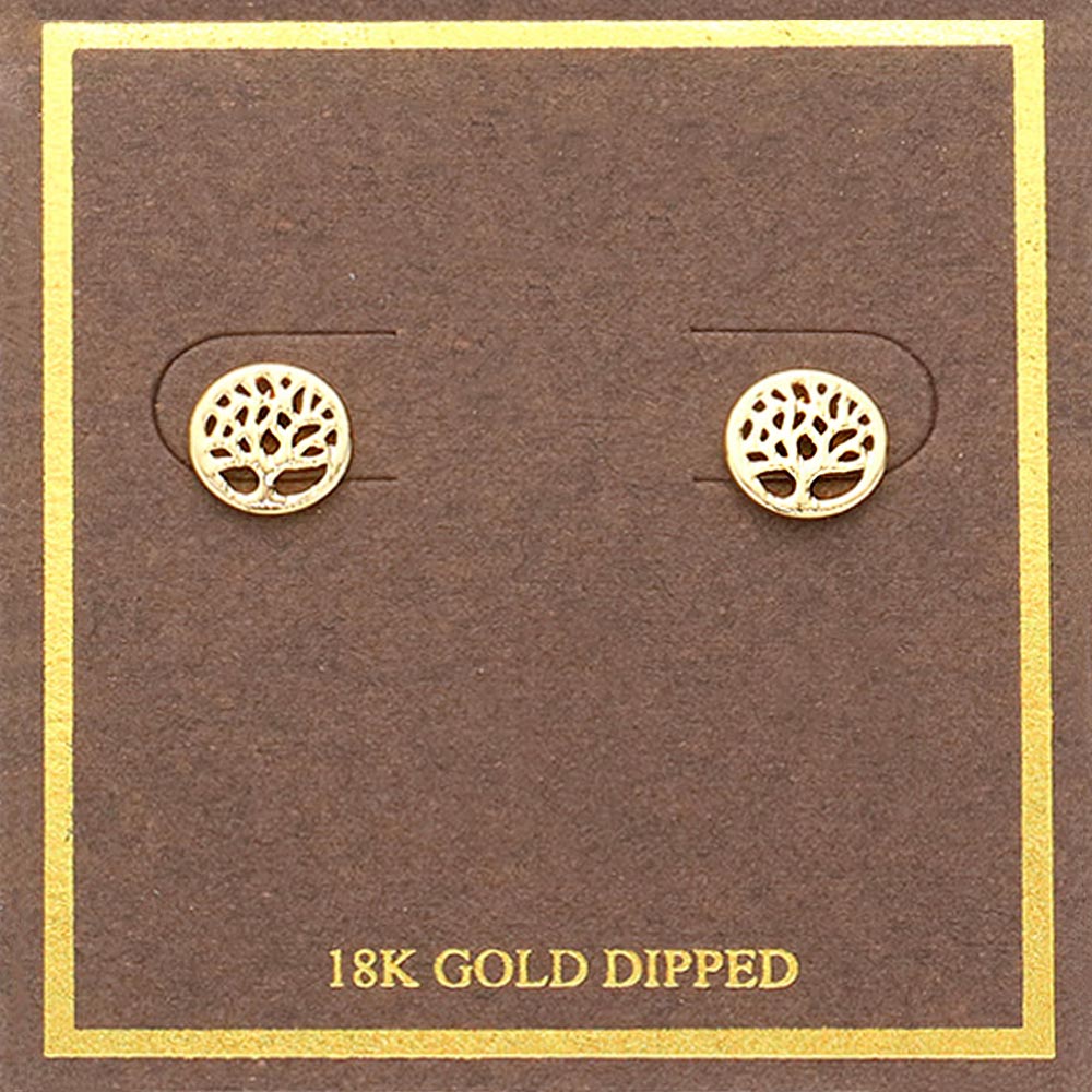 18K Gold Dipped Tree of Life Disc Stud Earrings