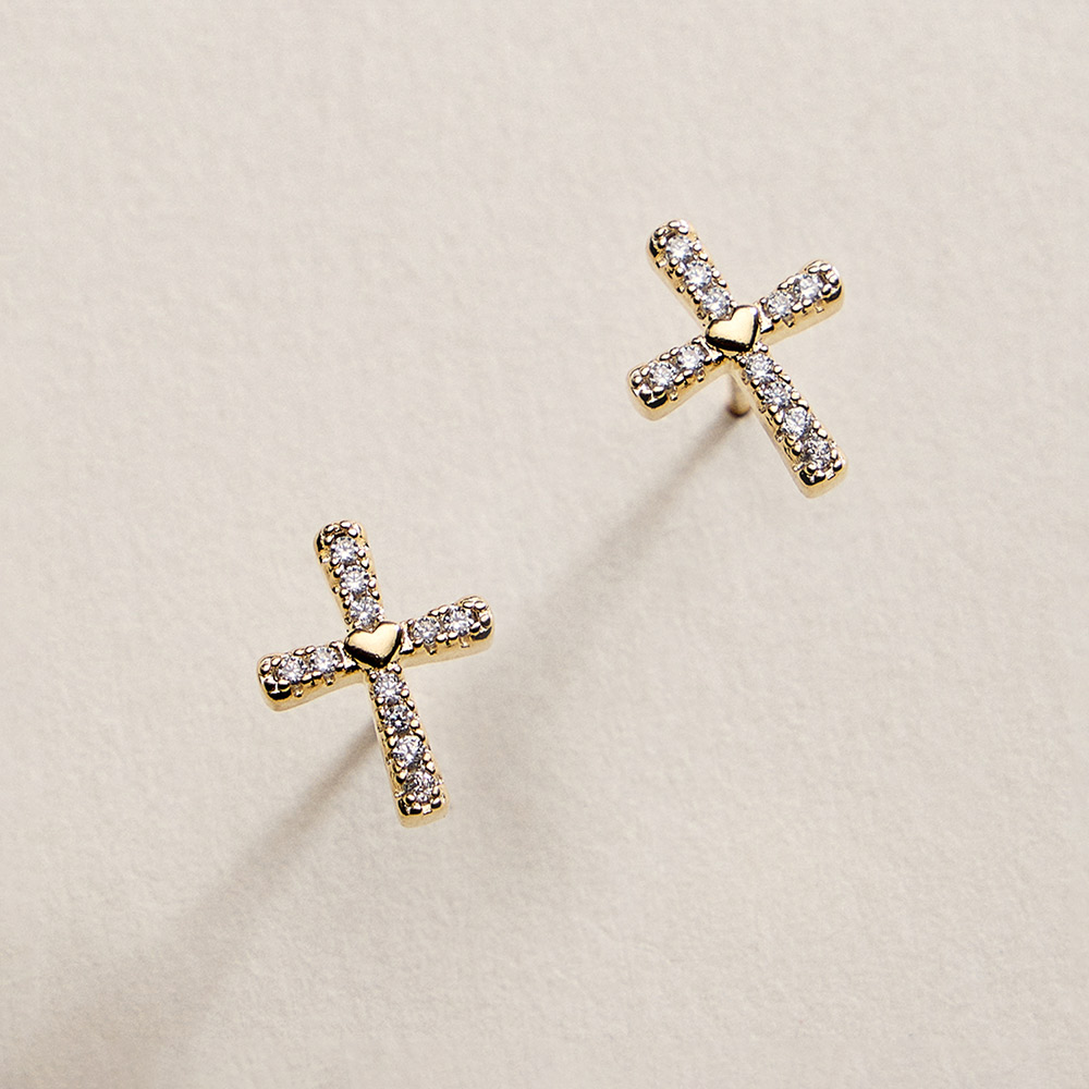 Details • Size : 0.3" X 0.5" • Post Back • Timeless cross stud earrings accented with sparkling CZ stones for a refined yet meaningful look. The compact 5mm size offers subtle shine that works beautifully for everyday wear or special moments. A versatile design that layers easily or stands out as a classic statement. • CZ Cubic Zirconia • Gold Filled • Hypoallergenic • Lead and Nickel Compliant • Made In Brazil
