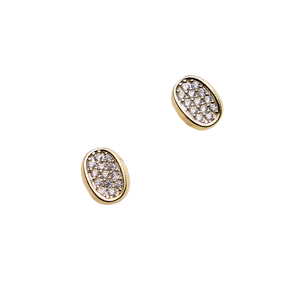 • Elegant oval stud earrings accented with shimmering pavĂ© CZ stones for refined everyday sparkle. Designed with a smooth, compact silhouette that sits comfortably on the ear, these versatile studs are perfect for daily wear, gifting, layering, or adding a polished touch to any look.