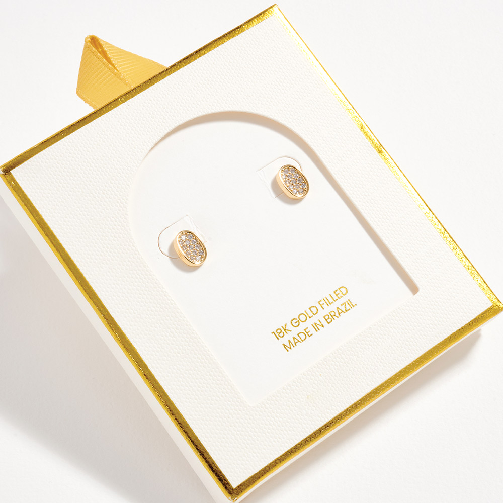 18K Gold Filled CZ Pave Mini Oval Stud Earrings