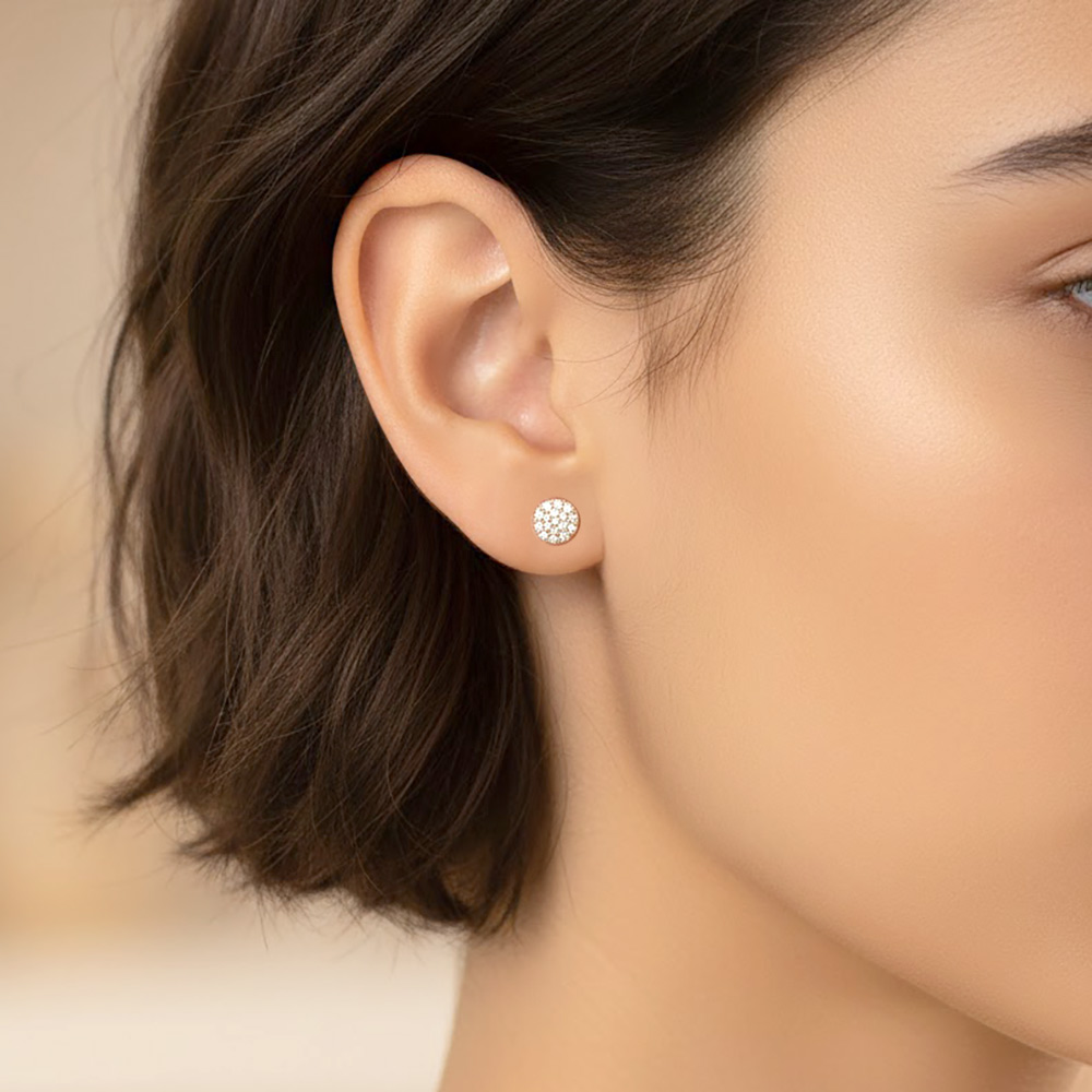 • Timeless round stud earrings designed for everyday elegance and effortless styling. Featuring a compact silhouette with sparkling accents, these studs deliver subtle shine that pairs easily with casual looks, workwear, and evening outfits, making them a versatile staple for any jewelry collection.