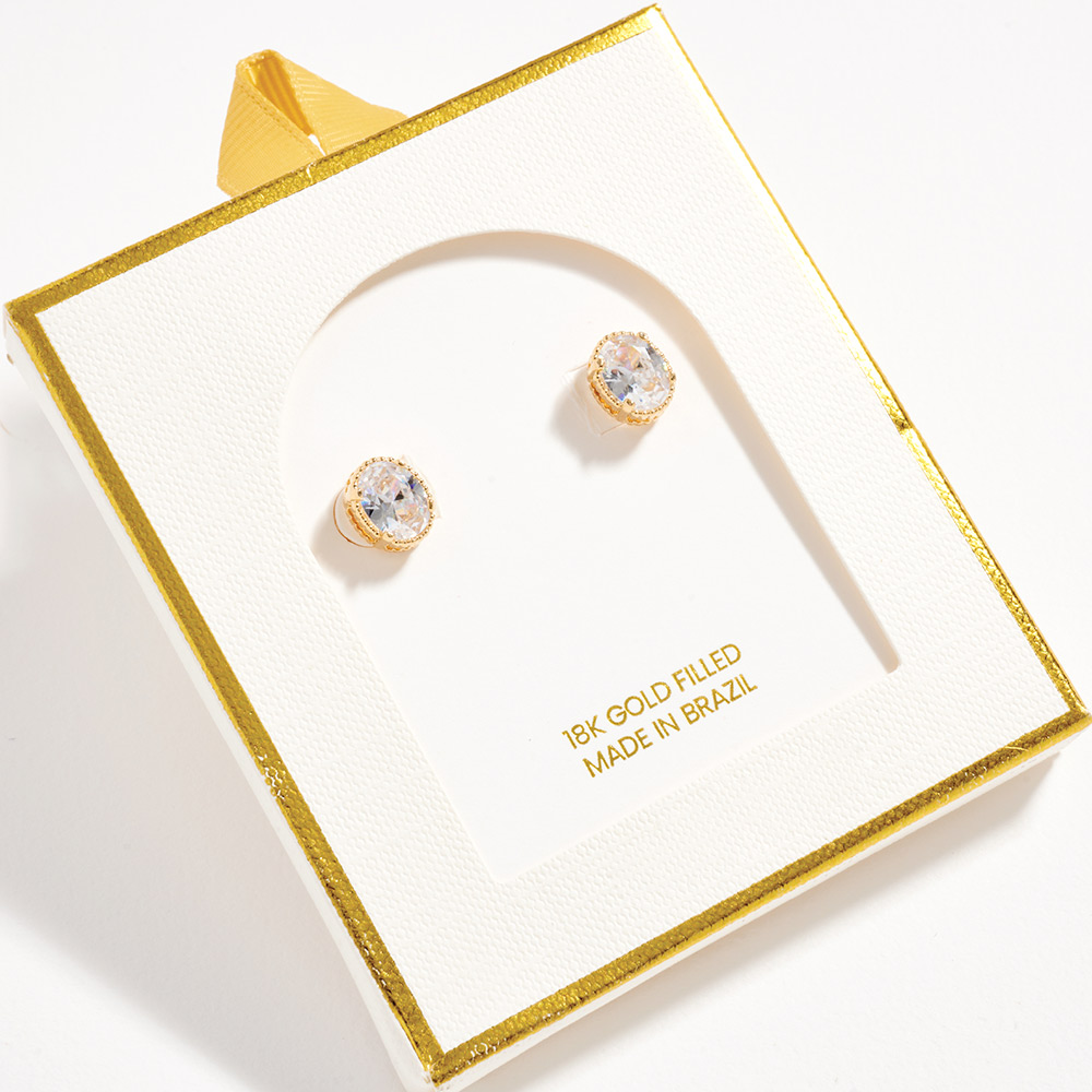 18K Gold Filled Oval Halo CZ Stud Earrings
