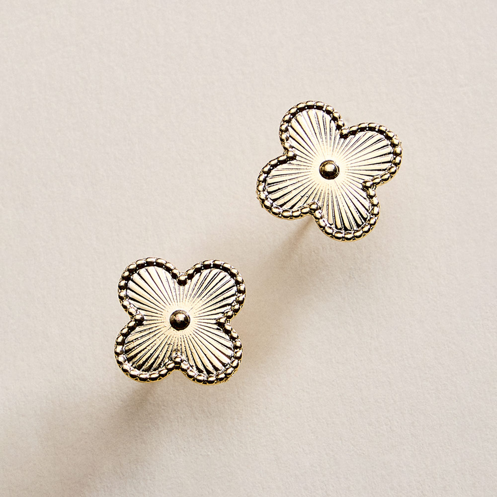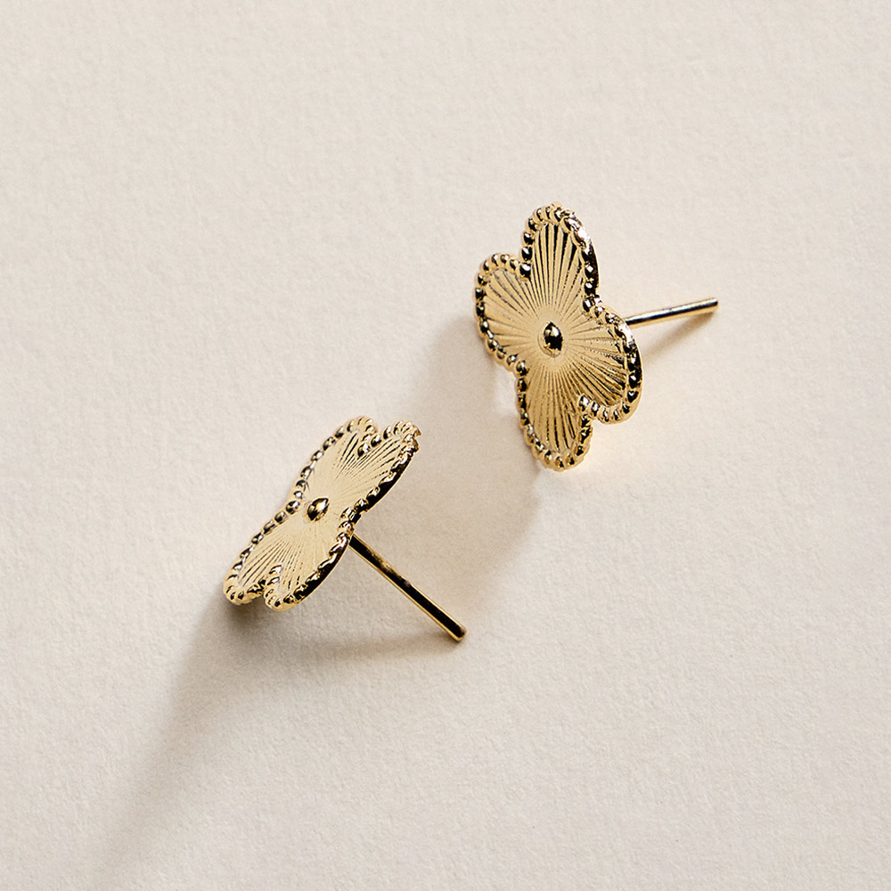 • Charming quatrefoil stud earrings featuring a delicate petal-inspired design with refined texture and a balanced silhouette. Perfect for daily wear or special occasions, these studs add a soft, elegant accent to any outfit and make a timeless gift for birthdays, holidays, or meaningful moments.