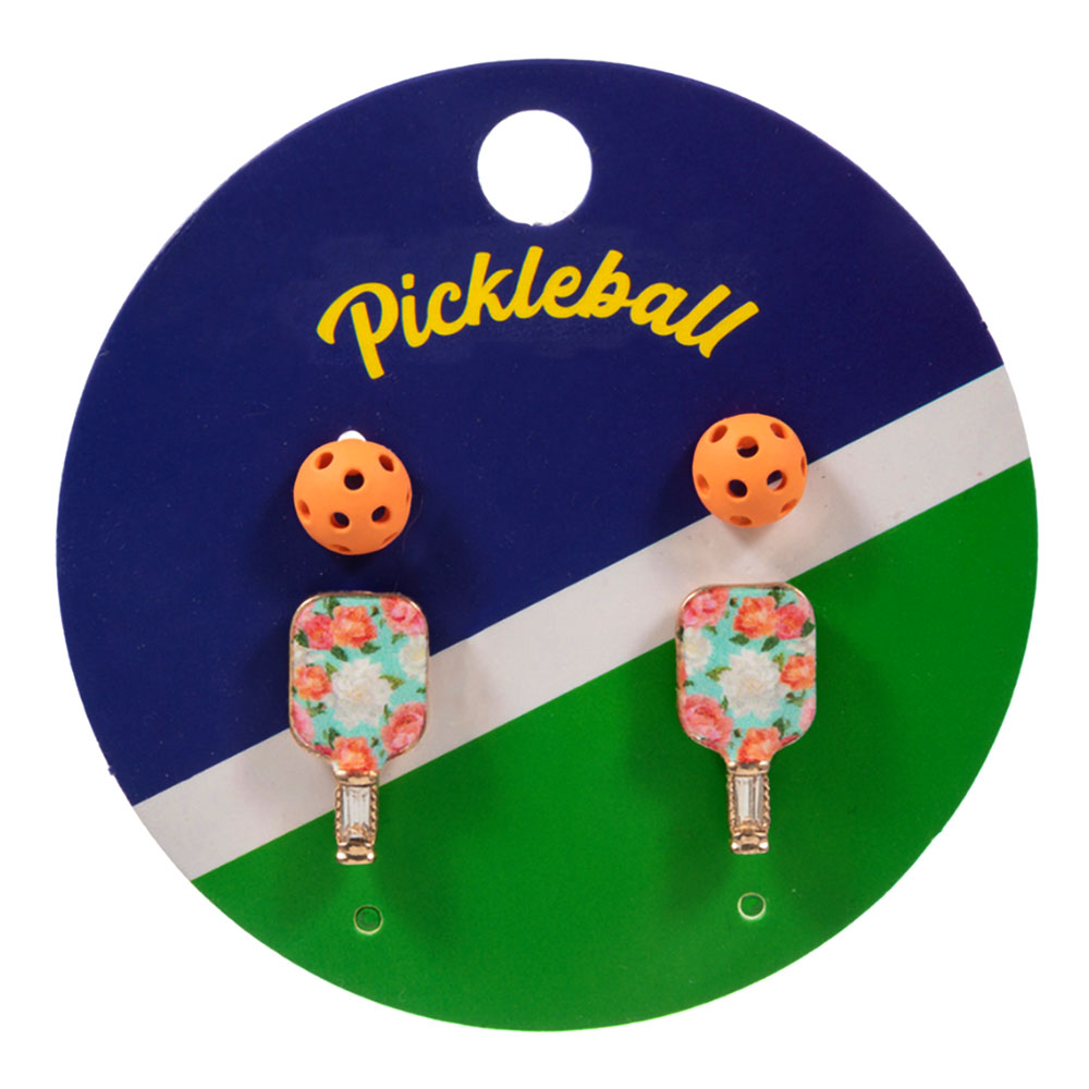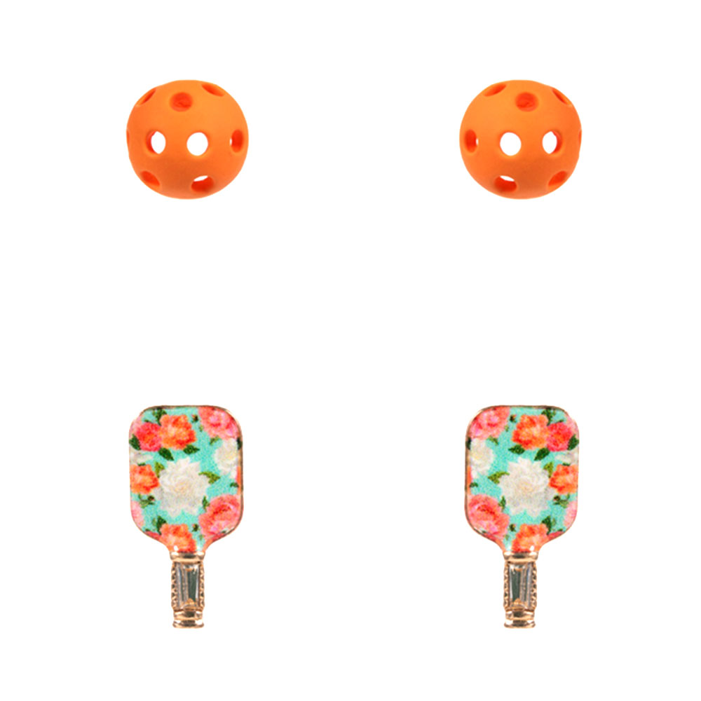 • This pickleball stud earring set features playful paddle and ball designs that add a sporty, cheerful touch to everyday looks. Easy to wear and style, these studs are perfect for casual outfits, gifting, or showing off pickleball pride with a fun, lightweight accessory that fits seamlessly into any jewelry collection.