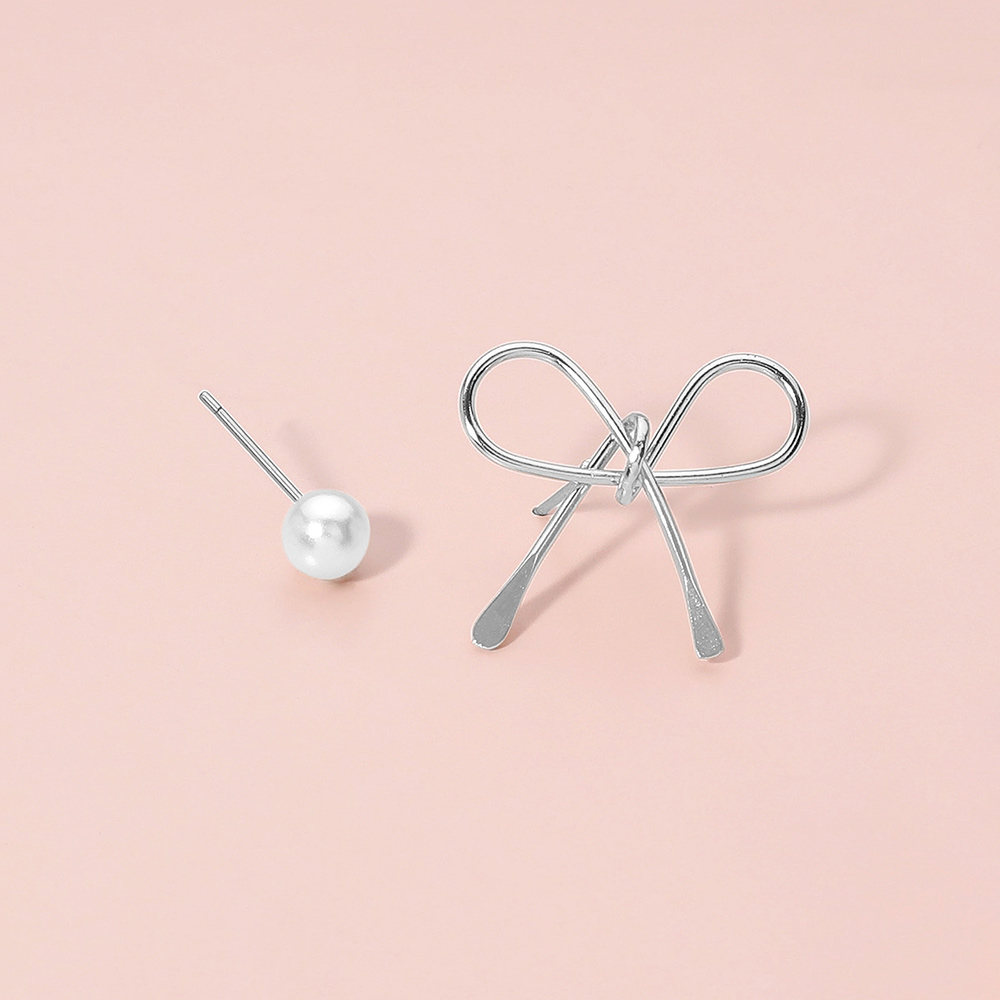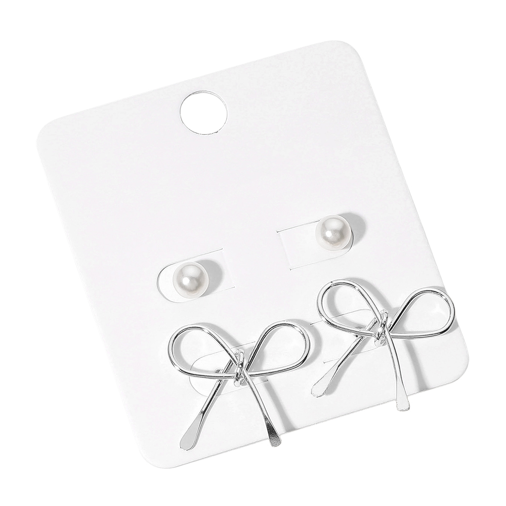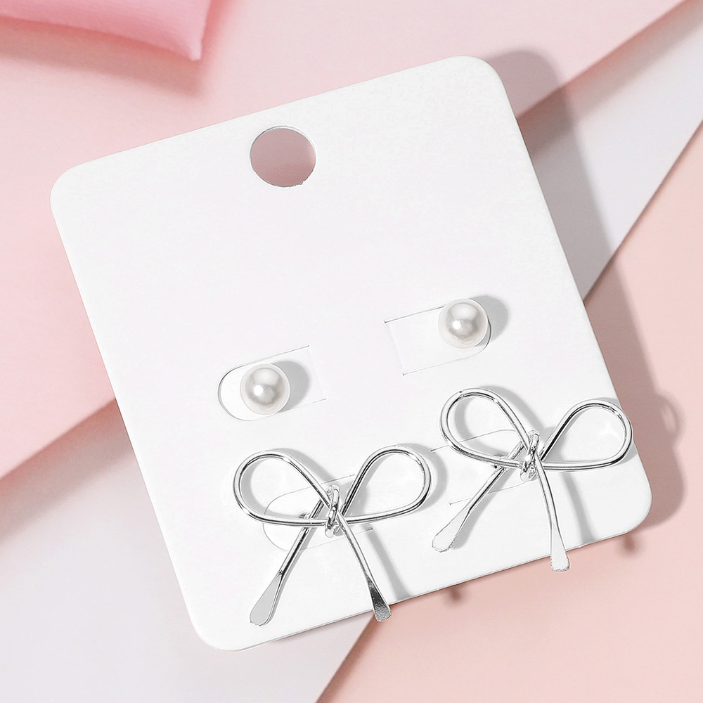 2Pairs - Pearl Metal Wire Knot Bow Stud Earring Set