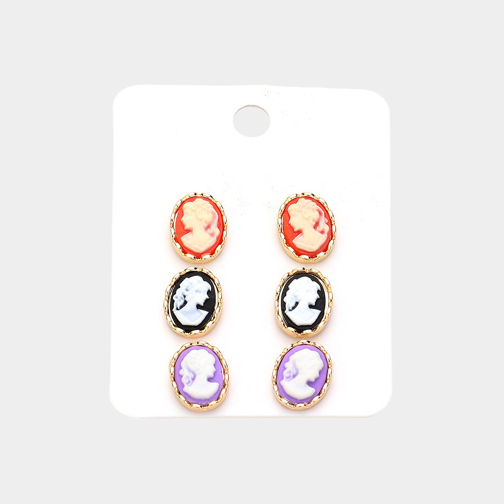 3PAIRS - Cameo Stud Earrings