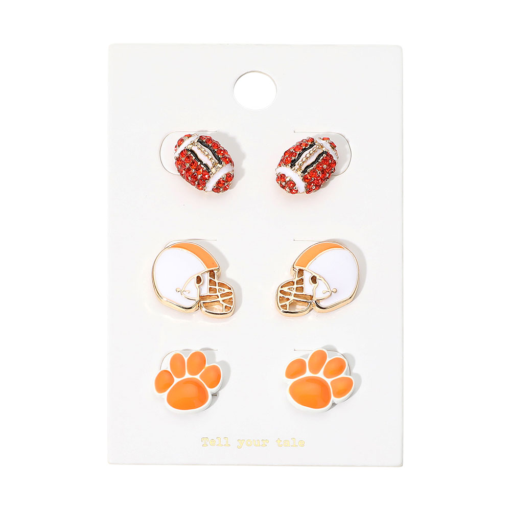 3Pairs - Game Day Spirit Ball Helmet Paw Stud Earring Set