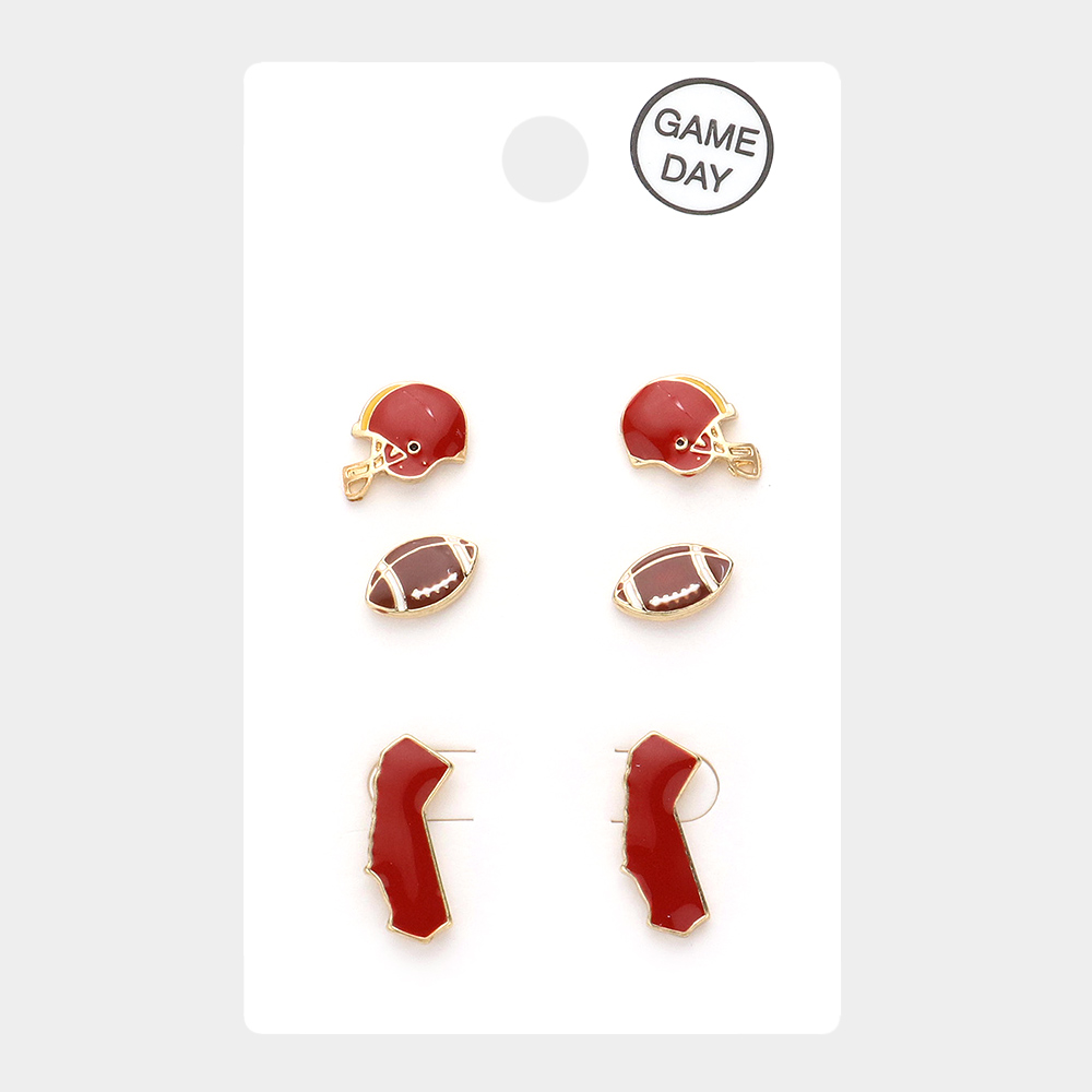 Details • Size : 0.25" L - 0.5" L • Post Back • Celebrate your team spirit with this Game Day stud earring set featuring three playful pairs inspired by sporty designs. Perfect for fans and casual wearers alike, these lightweight earrings add a fun and energetic flair to any outfit while showcasing your love for the game. • Lead and Nickel Compliant