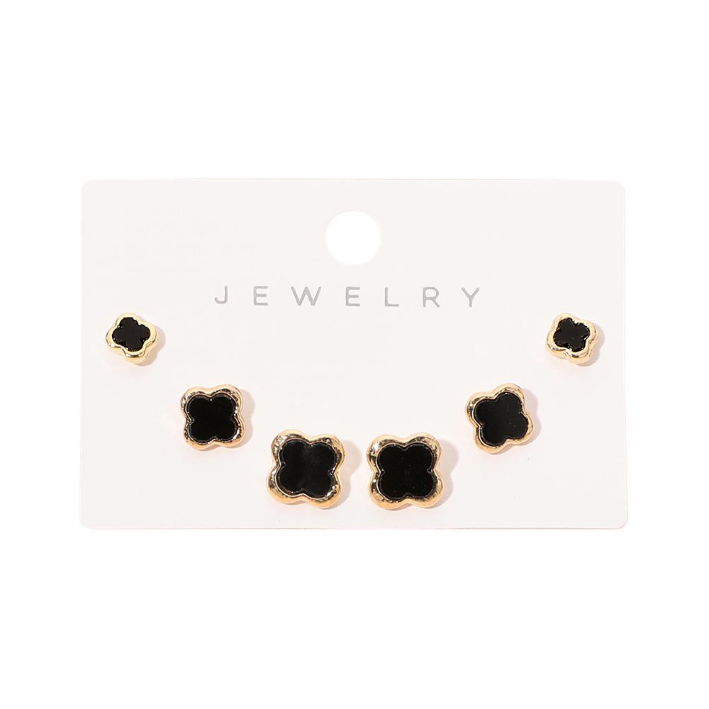 Details • Size : 0.2" - 0.3" L • Post Back • Stylish quatrefoil stud earring set designed for versatile everyday wear. The iconic clover shape adds a modern yet timeless accent that pairs easily with casual or dressy looks. Ideal for mix and match styling, gifting, and curated jewelry collections across seasons. • Lead and Nickel Compliant