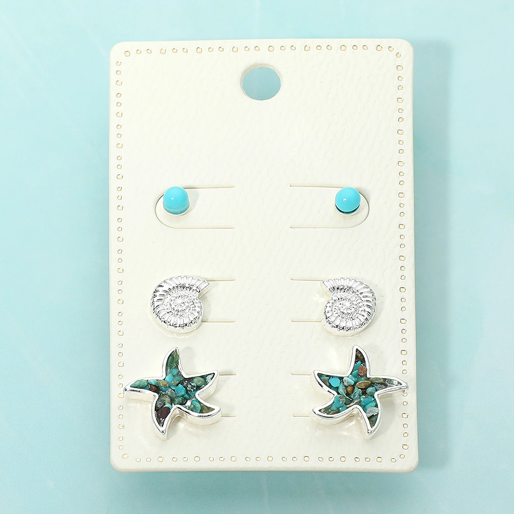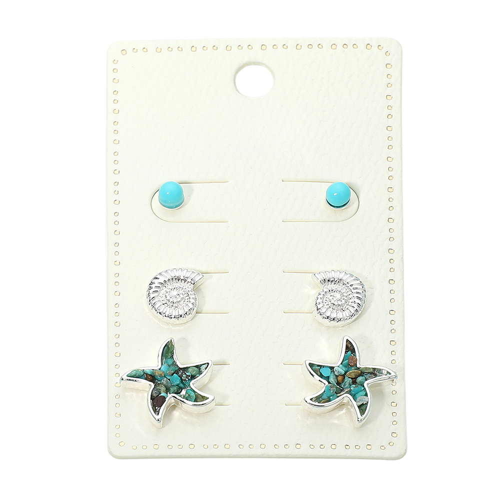 3Pairs - Shell Starfish Stud Earring Set 3Pairs - Shell Starfish Stud Earring Set