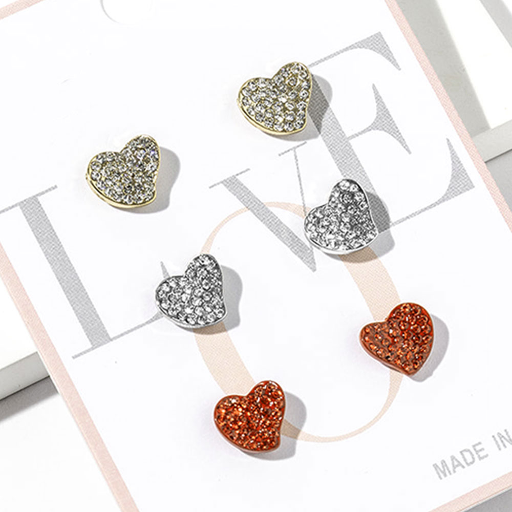• This versatile stud earring set features multiple heart shaped designs with pavĂ© style detailing for subtle sparkle and everyday charm. Perfect for mixing and matching, these studs add a playful yet polished touch to casual looks, special occasions, or gift assortments. Ideal for curated displays, impulse buys, and trend focused accessory collections.