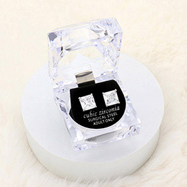 9mm Square Crystal Cubic Zirconia CZ Stud Earrings with Clear Box