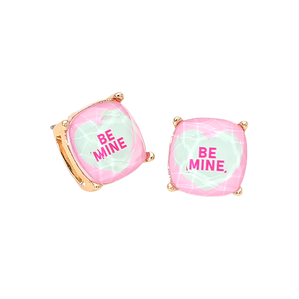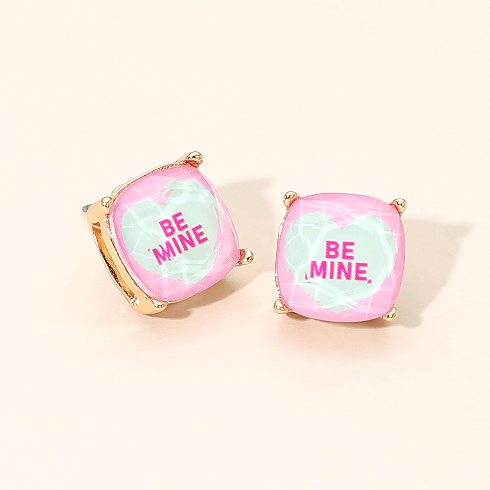 BE MINE Message Heart Square Cushion Stud Earrings BE MINE Message Heart Square Cushion Stud Earrings BE MINE Message Heart Square Cushion Stud Earrings