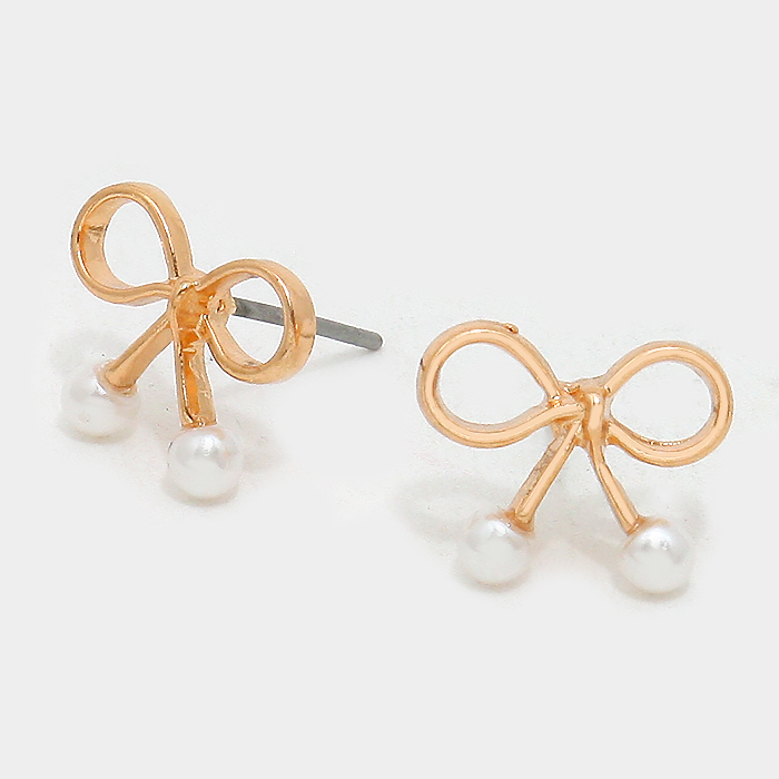 Faceted Beaded Brass Metal Wire Bow Pendant Necklace