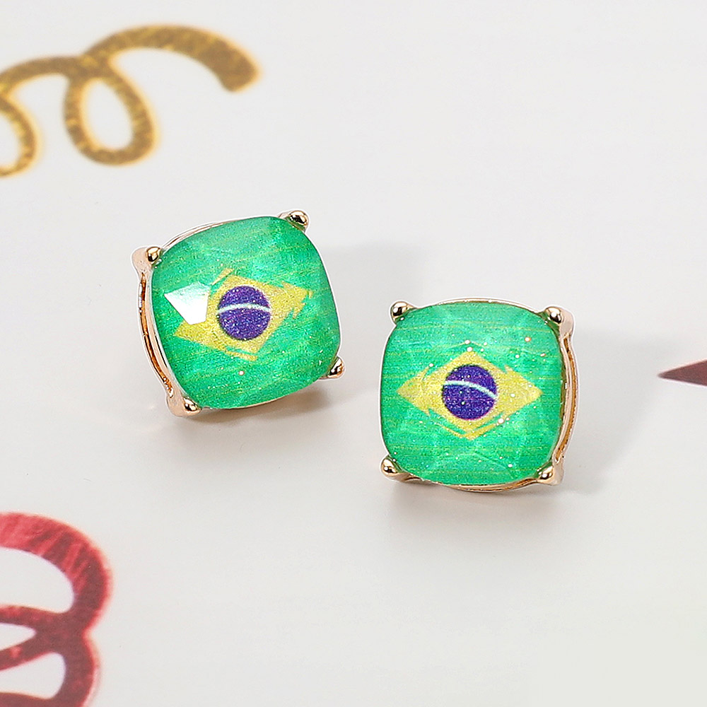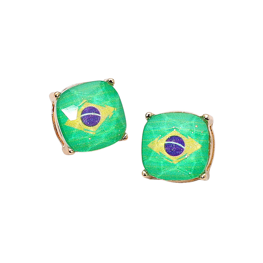 Brazil Flag Printed Faceted Cushion Stud Earrings Brazil Flag Printed Faceted Cushion Stud Earrings Brazil Flag Printed Faceted Cushion Stud Earrings