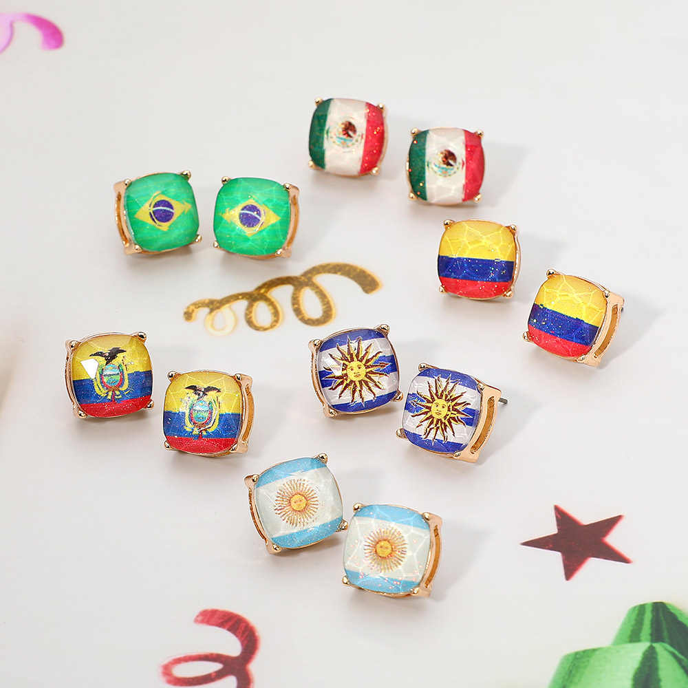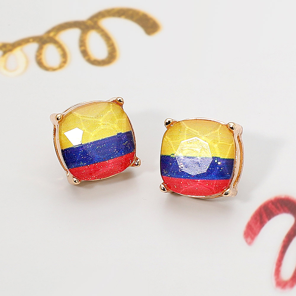 Details • Size : 0.5" X 0.5" • Post Back • Show your pride with these Colombia flag stud earrings, featuring the iconic sun emblem design framed in a sleek setting. Perfect for patriotic celebrations, travel, or everyday wear, these earrings combine national spirit with contemporary elegance for a meaningful, stylish accessory. • Lead and Nickel Compliant