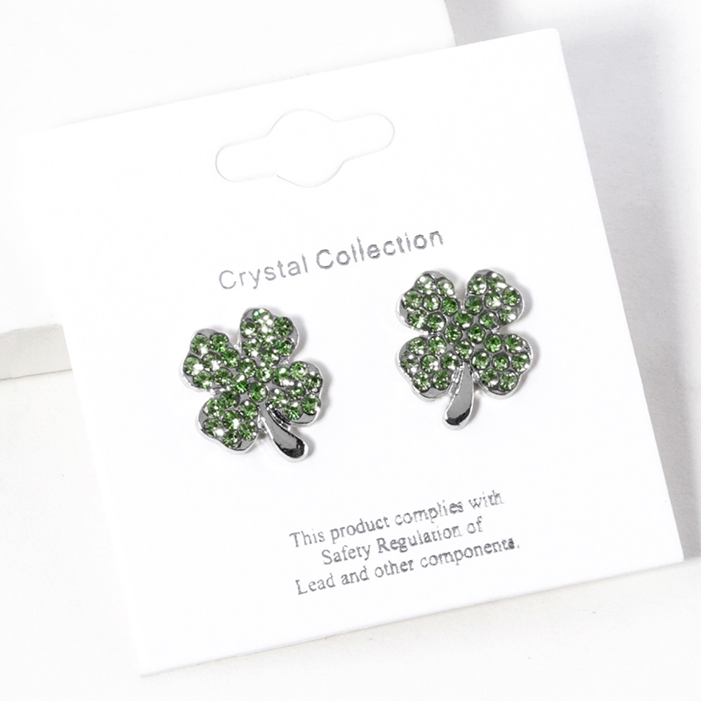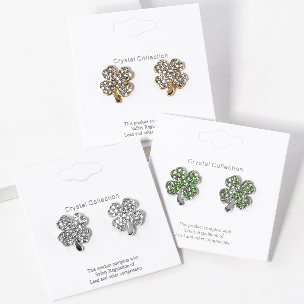 3Pairs - Clover Crystal Heart Metal Ball Stud Earrings