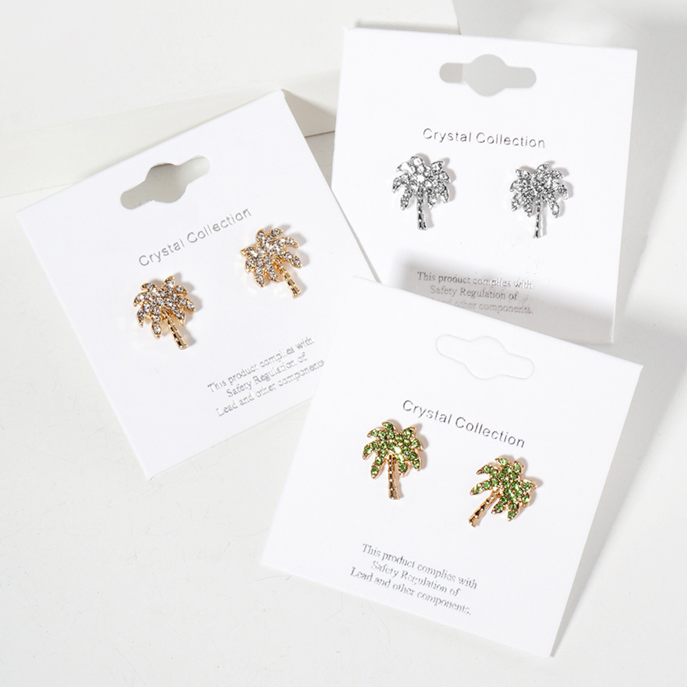 Details • Size : 0.4" X 0.5" • Post Back • Shine with these tropical palm tree crystal stud earrings. Perfect for beach days or summer vibes, these sparkling gold-tone studs add a playful, stylish touch to your accessory collection. • Lead and Nickel Compliant