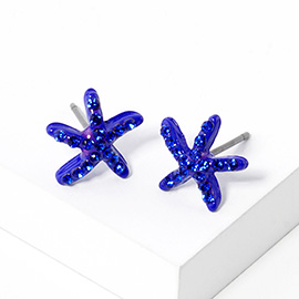 Rhinestone Embellished Starfish Metal Heart Charm Station Toggle Bracelet