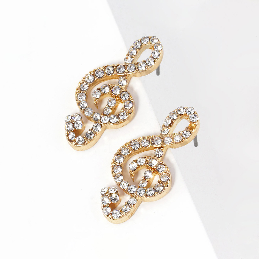 Crystal Paved Treble Clef Stud Earrings