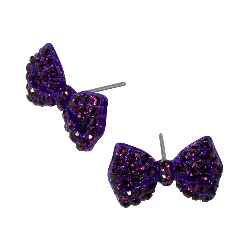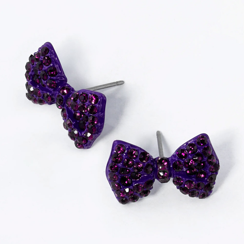 Details • Size : 0.75" X 0.5" • Post Back • Add a touch of glamour with the Crystal Bow Stud Earrings, featuring a radiant design that captures light beautifully. Perfect for both casual and formal looks, these sparkling earrings offer timeless elegance and charm, making them a must-have accessory for any jewelry collection. • Lead and Nickel Compliant