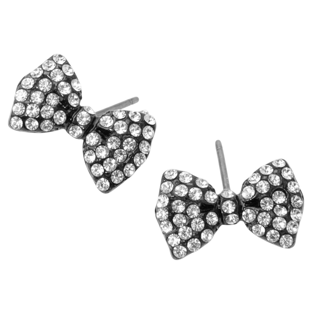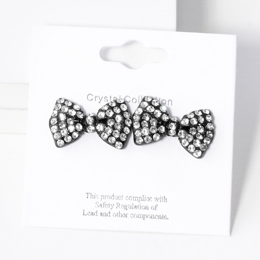 Details • Size : 0.75" X 0.5" • Post Back • Add a touch of glamour with the Crystal Bow Stud Earrings, featuring a radiant design that captures light beautifully. Perfect for both casual and formal looks, these sparkling earrings offer timeless elegance and charm, making them a must-have accessory for any jewelry collection. • Lead and Nickel Compliant