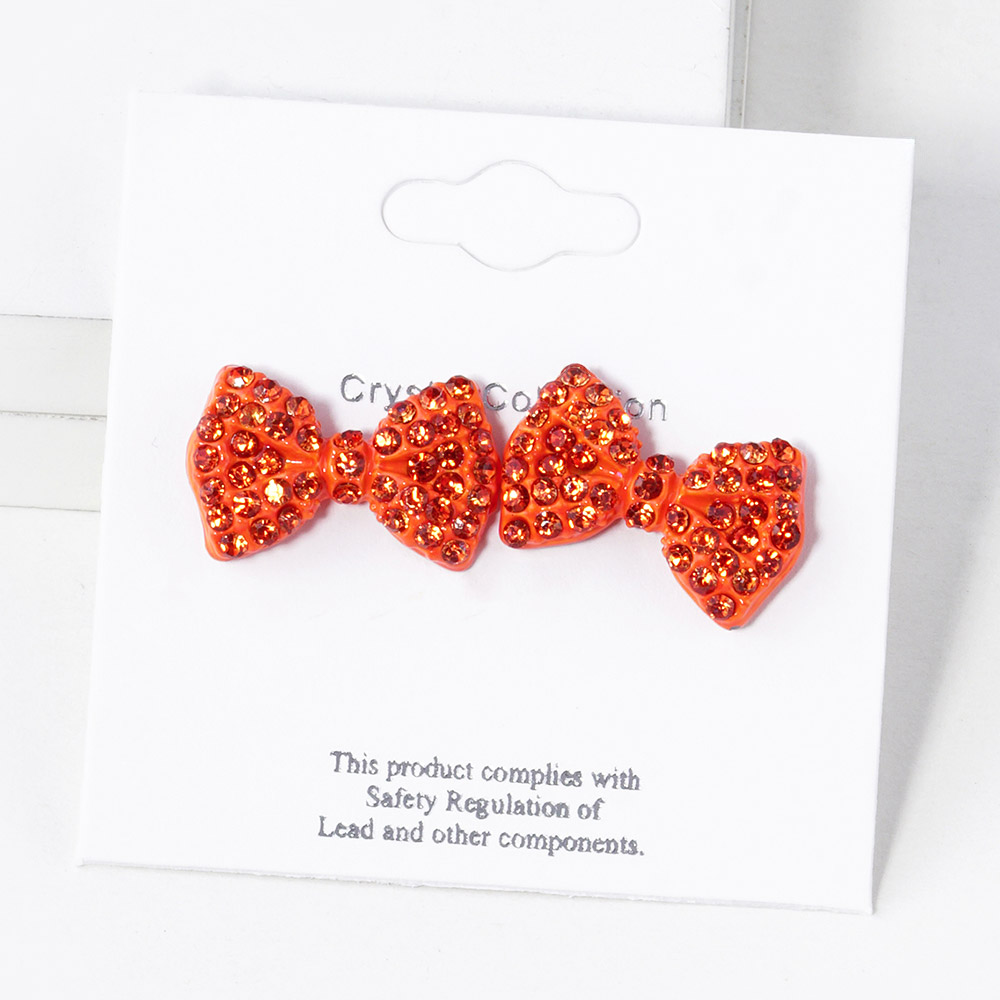 Details • Size : 0.75" X 0.5" • Post Back • Add a touch of glamour with the Crystal Bow Stud Earrings, featuring a radiant design that captures light beautifully. Perfect for both casual and formal looks, these sparkling earrings offer timeless elegance and charm, making them a must-have accessory for any jewelry collection. • Lead and Nickel Compliant