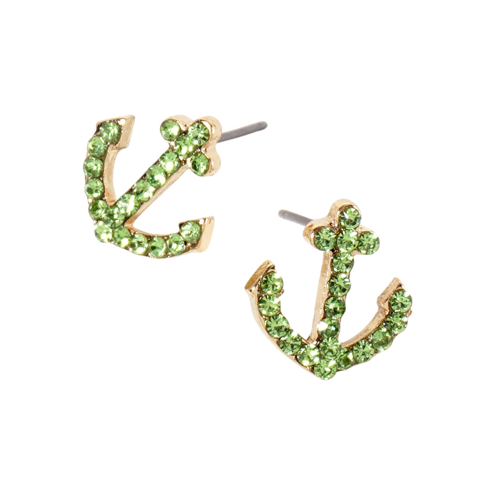 Crystal Rhinestone Paved Anchor Stud Earrings