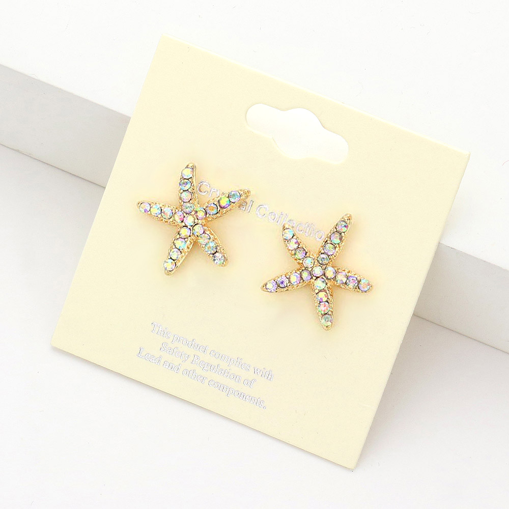 Two Tone Starfish Abalone Stone Paved Wave Round Dangle Earrings