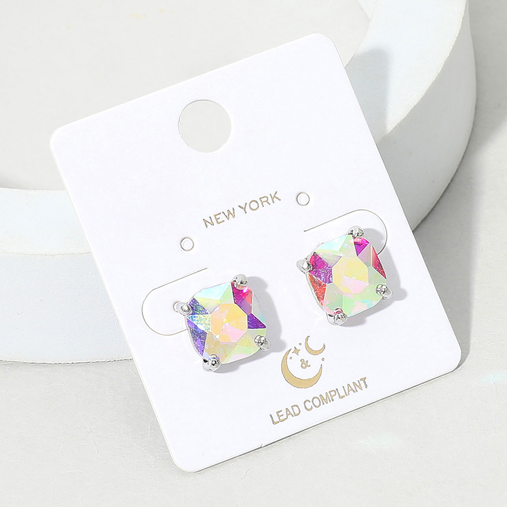 • Brighten up your style with these cushion-cut crystal stud earrings, set in a classic four-prong setting for maximum brilliance. Perfect for everyday wear or special occasions, these elegant studs add a vibrant, polished touch to any outfit with ease.