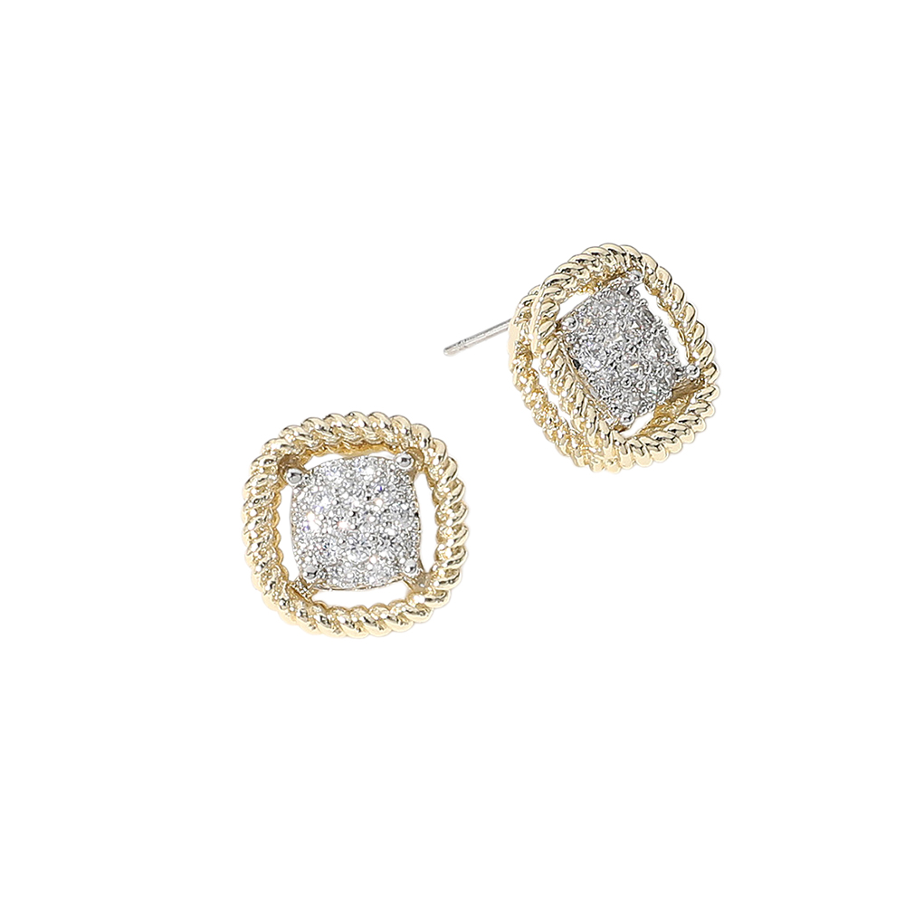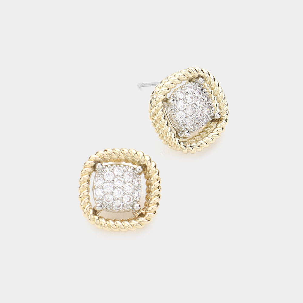 14K Gold Plated Two Tone CZ Paved Twisted Metal Cuff Bracelet