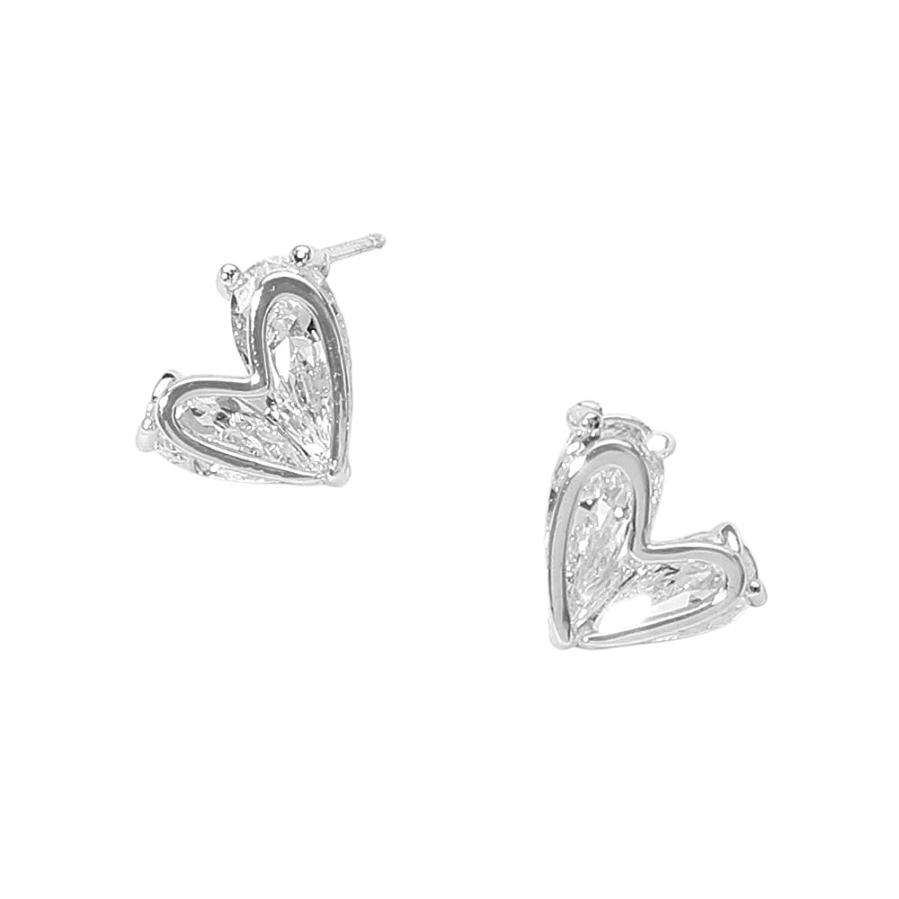 Details • Size : 0.5" X 0.4" • Post Back • Refined open-heart stud earrings accented with a sparkling crystal centerpiece for understated elegance and soft shine. Designed for easy everyday wear, they pair beautifully with casual looks or add a subtle romantic touch to evening outfits, making them perfect for minimalist styling or delicate layering. • Lead and Nickel Compliant • CZ Cubic Zirconia