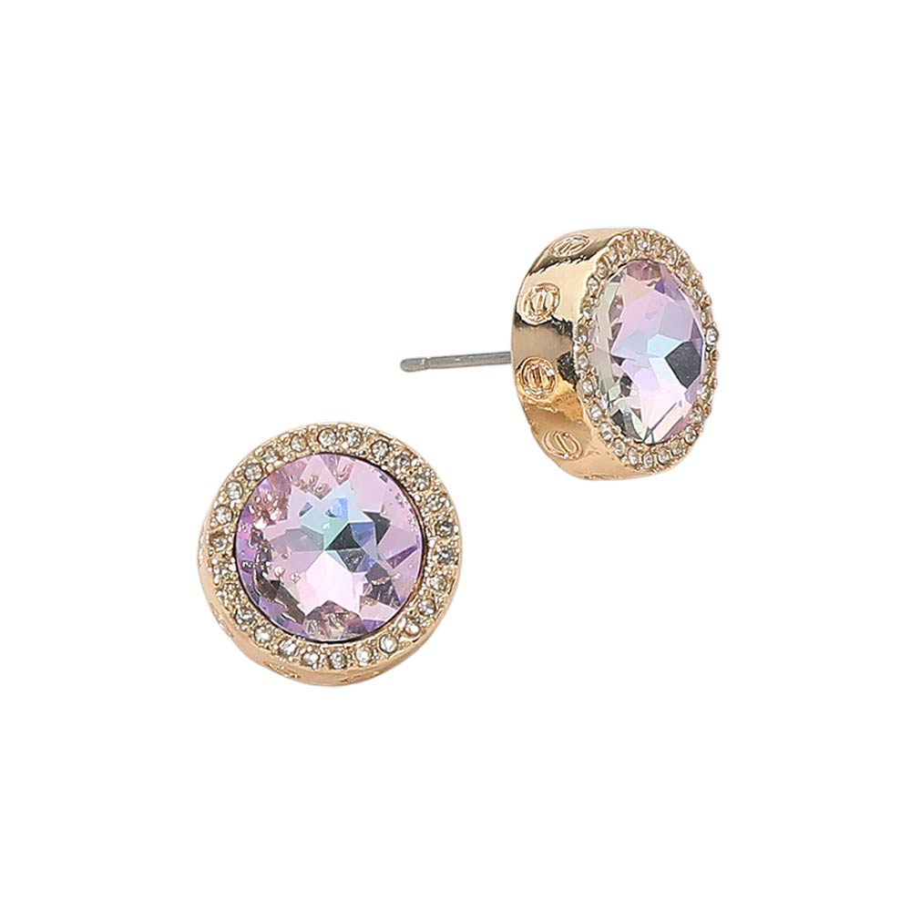 Details • Size : 0.6" X 0.5" • Post Back • Refined stud earrings featuring a faceted center design framed by a detailed halo for added dimension and shine. The classic round silhouette offers a balanced look that transitions easily from daytime wear to evening styling, making these studs ideal for boutiques, gifting collections, and everyday fashion displays. • Lead and Nickel Compliant