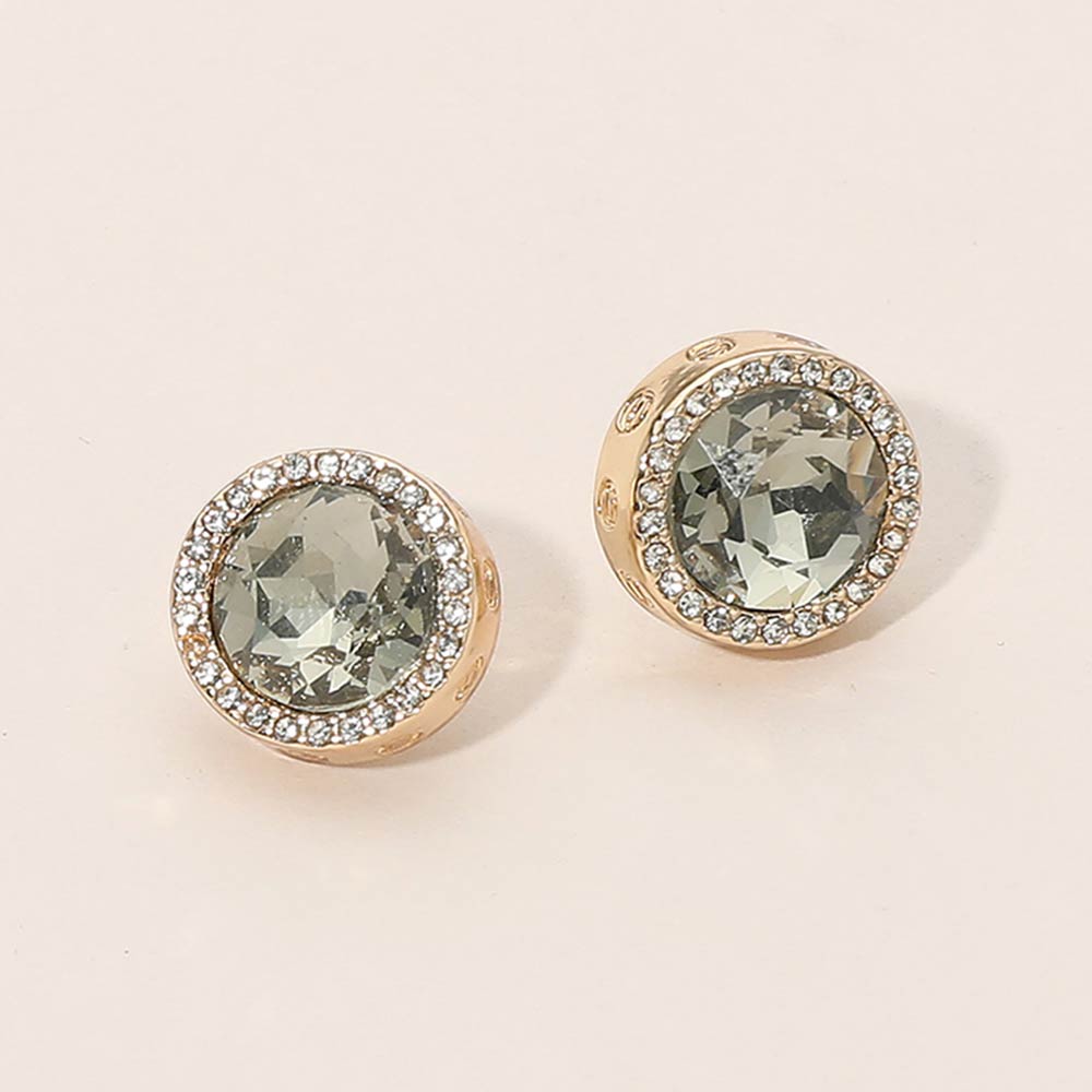 • Refined stud earrings featuring a faceted center design framed by a detailed halo for added dimension and shine. The classic round silhouette offers a balanced look that transitions easily from daytime wear to evening styling, making these studs ideal for boutiques, gifting collections, and everyday fashion displays.