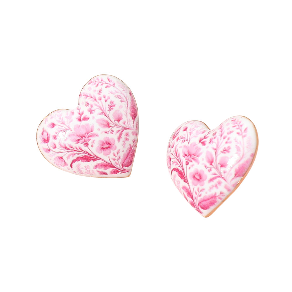 • These heart-shaped stud earrings feature a delicate floral pattern that adds a romantic, vintage-inspired touch to everyday styling. Designed for lightweight comfort and easy wear, they are ideal for casual looks, gifting, seasonal collections, or adding charm to curated boutique jewelry assortments.