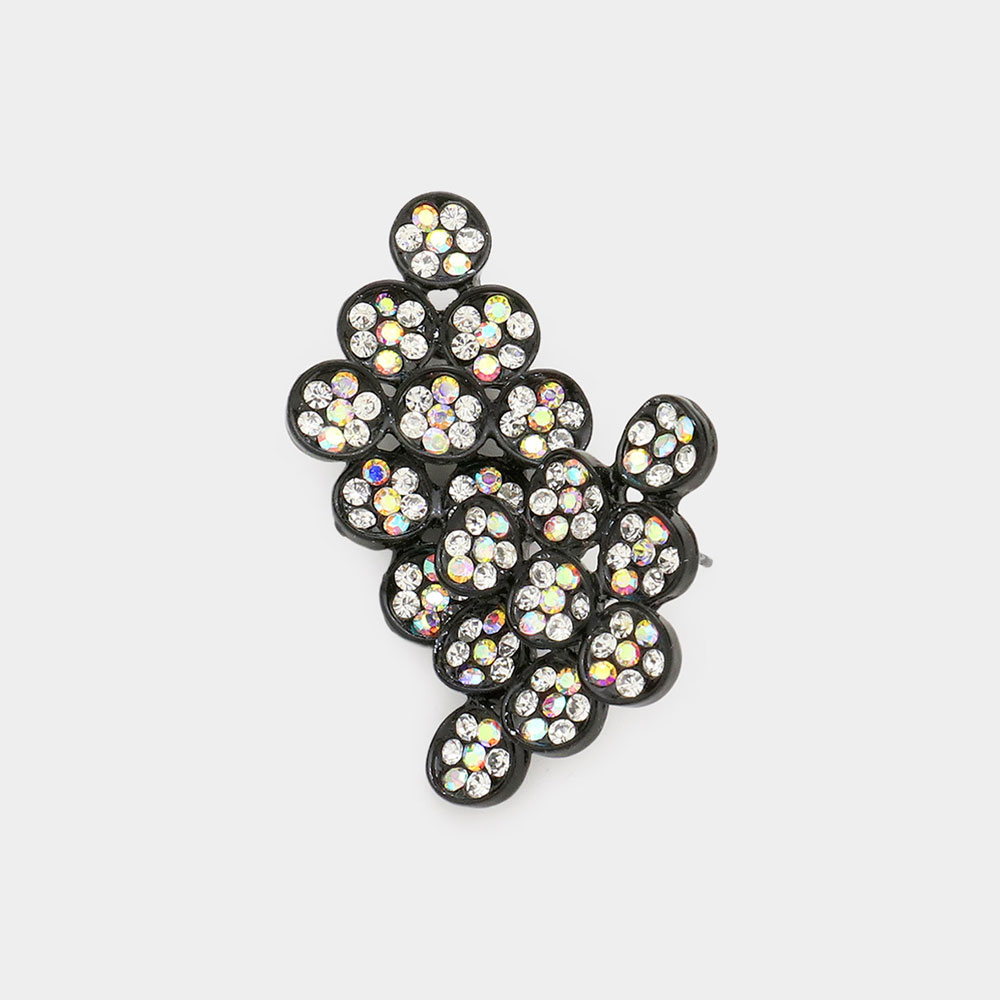 Bold Vintage Floral Rhinestone Pin Brooch