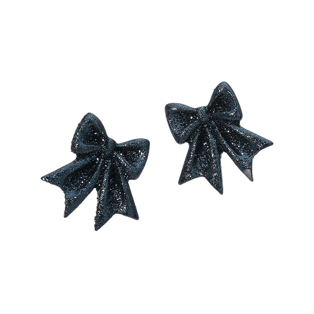 • Charming bow shaped earrings with a sparkling glitter finish for a playful yet elegant touch. Perfect for casual outfits or festive occasions, these statement studs add a whimsical sparkle to any look while keeping your style fresh, fun, and effortlessly chic.