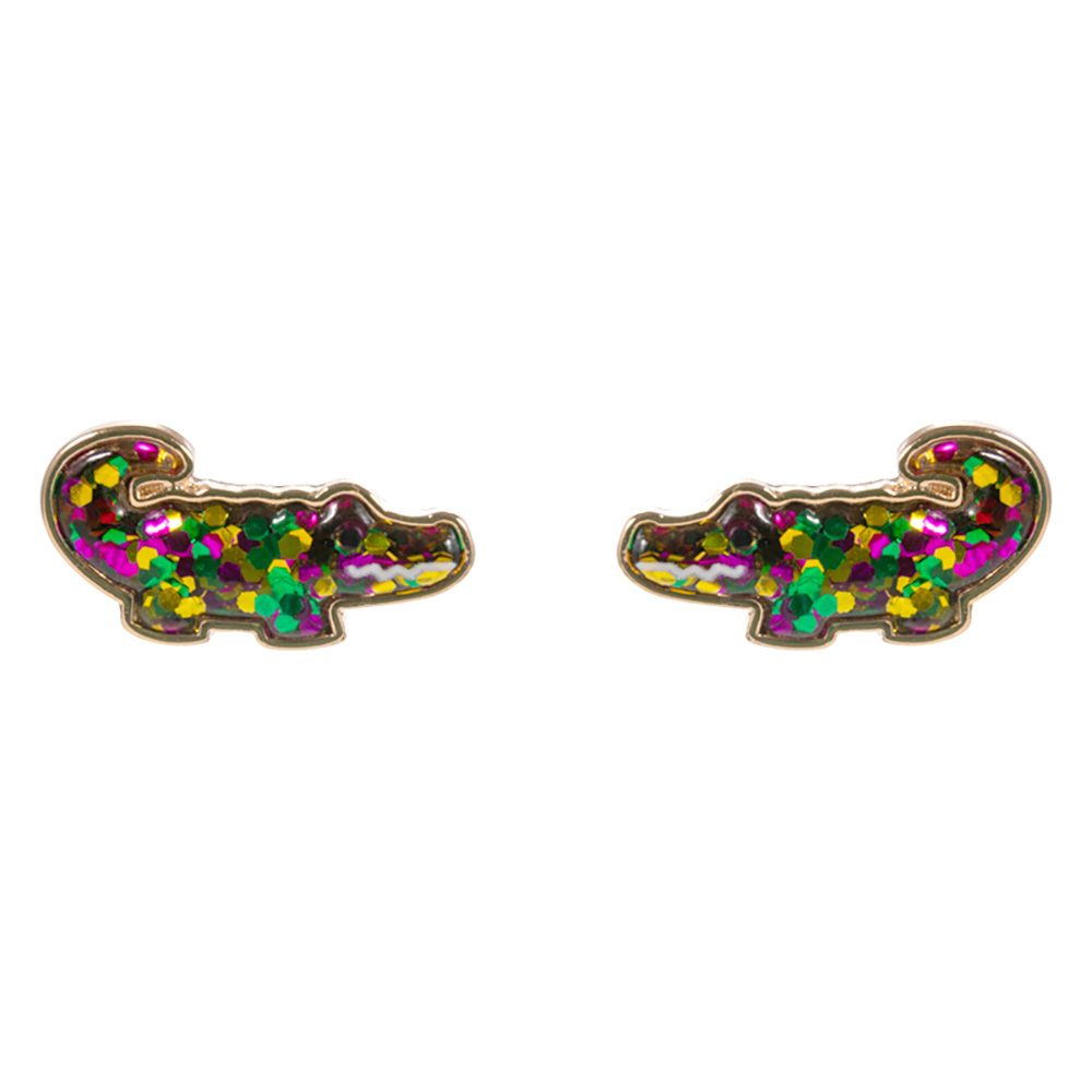 Glitter Mardi Gras Alligator Stud Earrings Glitter Mardi Gras Alligator Stud Earrings