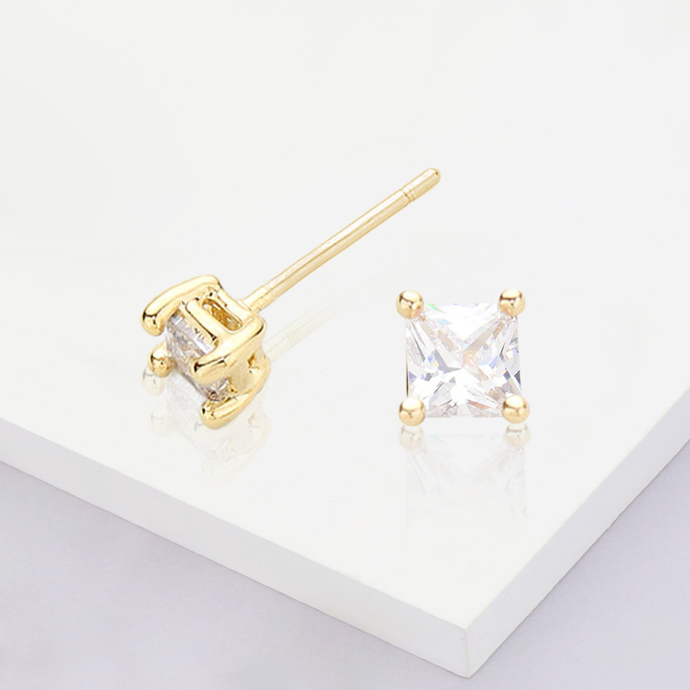 Gold Dipped 3mm Square CZ Stone Stud Earrings
